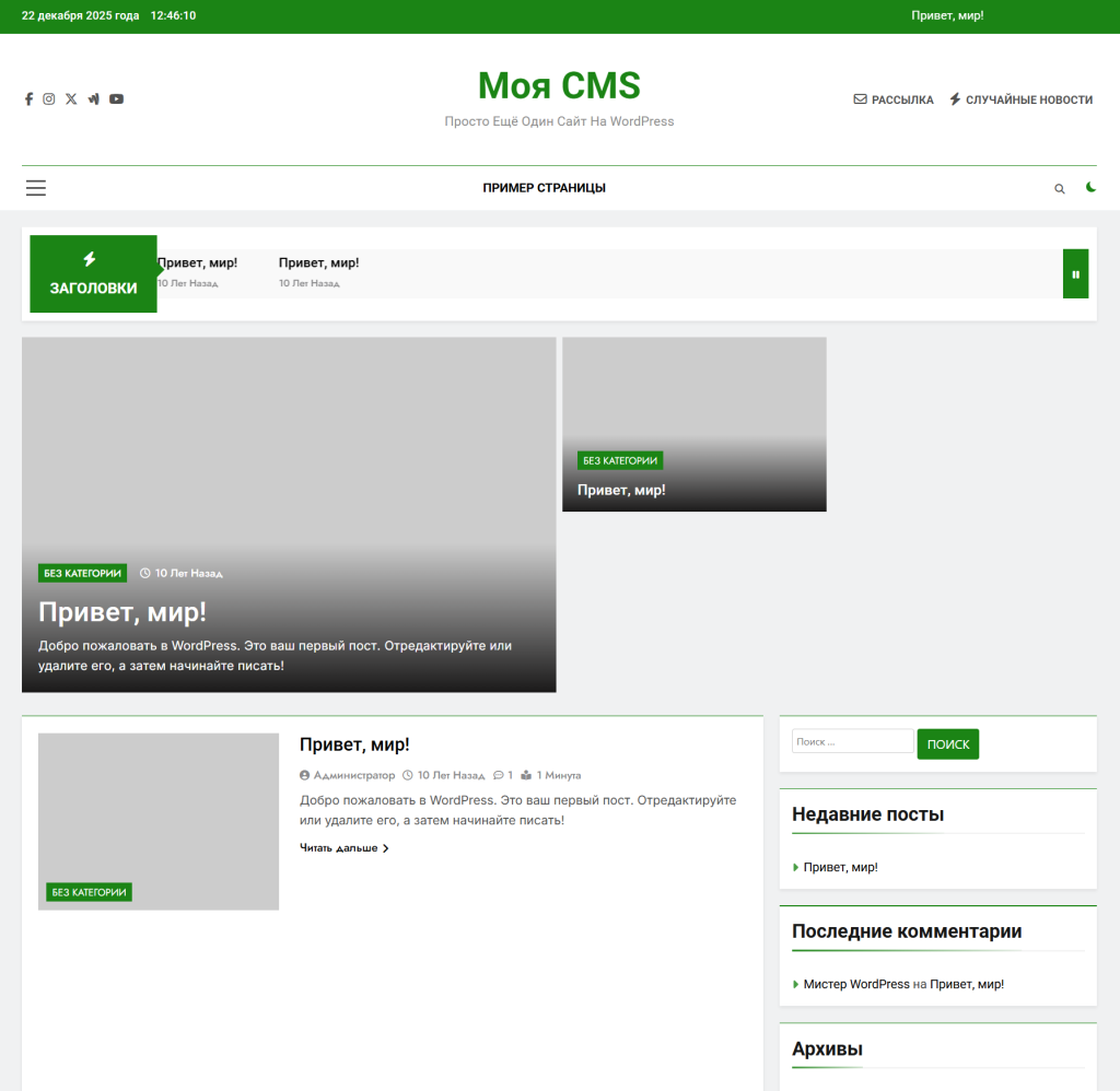 UncategorizedСоздал сайт) admin16 часов тому назад01 минут 22 декабря 2025 года решил создать свой сайт в WordPress. Пока это просто шаблон… Следите за прогрессом! Не судите строго) Навигация по записям Предыдущая: Hello world!Далее: Осваиваю функционал WordPress Добавить комментарий Отменить ответВаш адрес email не будет опубликован. Обязательные поля помечены *Комментарий * Имя * Email * Сайт Сохранить моё имя, email и адрес сайта в этом браузере для последующих моих комментариев.